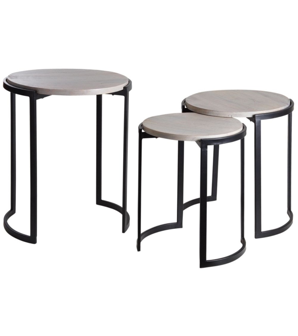 Sellettes rondes en métal et manguier (lot de 3) noir