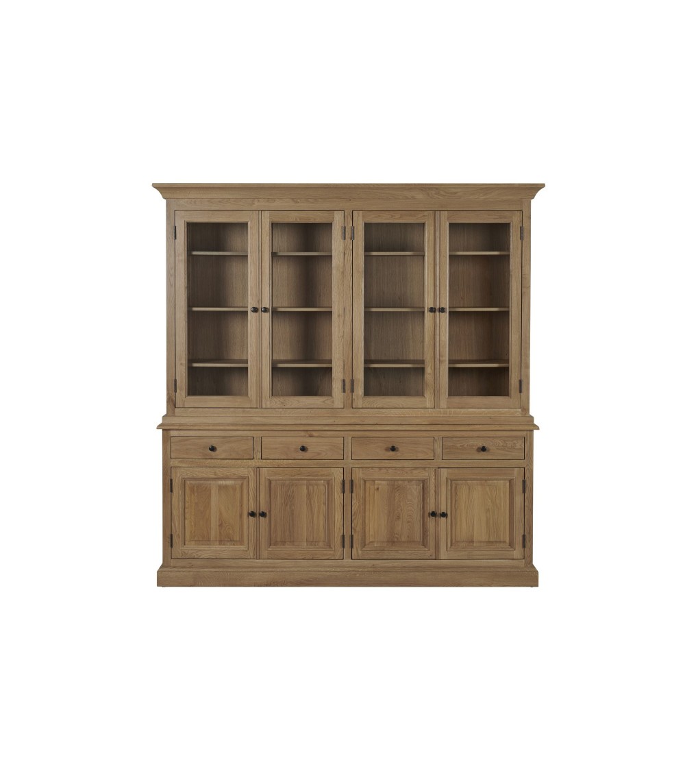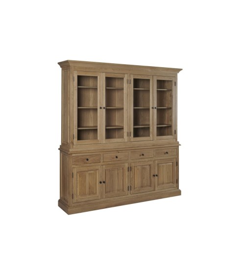 Buffet vaisselier en chêne 4 portes vitrées 4 tiroirs 4 portes bois