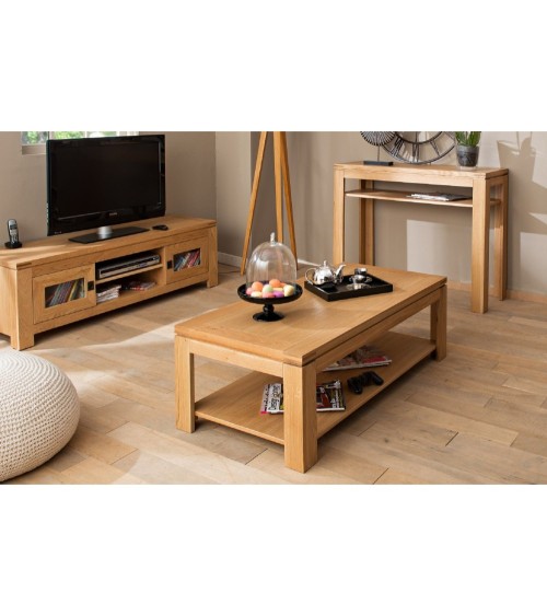 L'amour du bois vous amène à choisir de préférence des meubles en bois naturel. De bonnes raisons pour aimer cette table basse chene massif rectangulaire BOSTON.Contemporaine et fonctionnelle, elle dispose d'un double plateau pour avoir à portée de main télécommandes et magazines.Finition chêne clair. Également disponible en chêne blanchi (Réf. 8015) Description technique : Dimensions : L 120 x P 60 x H 40 cmPoids : 32 KgPiètement en chêne massif de 80 mm de largeur.Le plateau est constitué d'une ceinture de 30 mm d'épaisseur sur 80 mm de profondeur et d'un panneau central en fibre de moyenne densité plaqué chêne.L'assemblage de la ceinture est assuré par tenon-mortaise apparents.La finition chêne clair naturelle est protégée par l'application d'un vernis cellulosique.A monter soi même, notice incluse....