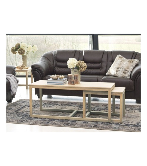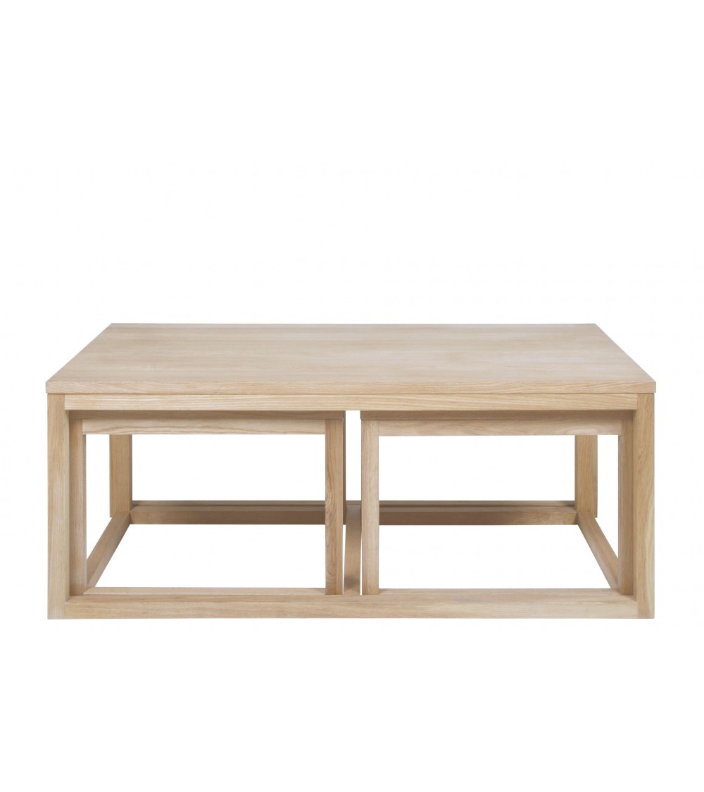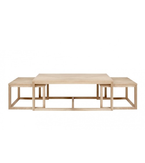 La table basse CORNER est composé d'une première table basse de 120 centimètres de long et de deux autres tables basses de plus petite taille (L50 x P 50 centimètres). À la fois pratiques et esthétiques, ces tables basses sauront trouver une place de choix dans votre salon. Une table basse en chêne blanchiFabriquée en chêne massif et placage chêne dans un design épuré, la table basse gigogne CORNER est particulièrement fonctionnelle et s'adapte à tous vos moments de convivialité en famille ou entre amis. Vous aimerez sa hauteur de 50 centimètres qui rend le diner devant la télé confortable.Sa finition blanchie apporte une touche de fraîcheur pour une ambiance bord de mer et romantique. Description technique : Dimensions table 1 : L 120 x H 50 x P 60 cm Dimensions table 2 et 3 : L 56 x H 44 x P 51,4 cmPoids net : 36 kgTables basses en chêne naturel.Finition blanchie, huilée.Ensemble de trois tables gigognes à monter.Livrées en 1 seul colis : L 131,5 x P 70 x H 23,6 cm...