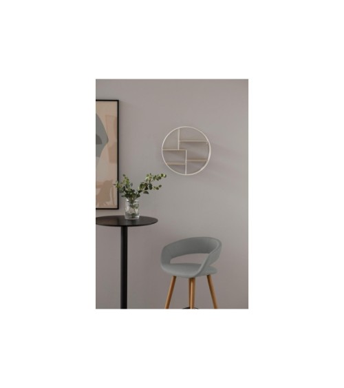 Par son originalité et son design épuré, cette bibliothèque murale en MDF et en métal saura vous séduire et apportera du style à votre pièce. Les quatre plateaux couleur bois clair vous permettrons d'exposer vos plus beaux objets déco et vos bibelots les plus précieux. Selon la clarté de votre pièce craquez pour l'un ou l'autre de nos coloris. Description technique : Dimensions : L: 45x H: 45x P: 10 cm.Chaque étagère peut supporter jusqu'à 3 Kg max Diamètre : 45 cm. Matière : MDF et métal finition expoxy. Disponible 2 coloris : Bois clair/Blanc ou Bois clair/NoirDimension colis : 11 x 45,5 x 45 cm ...