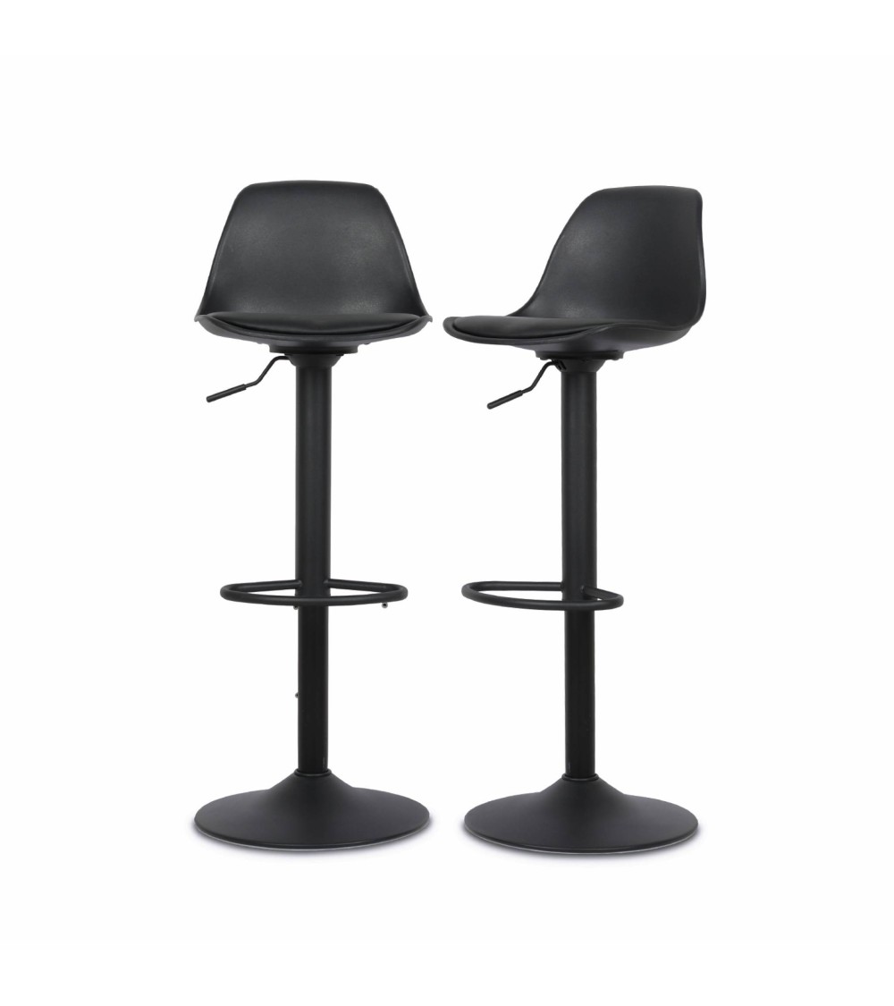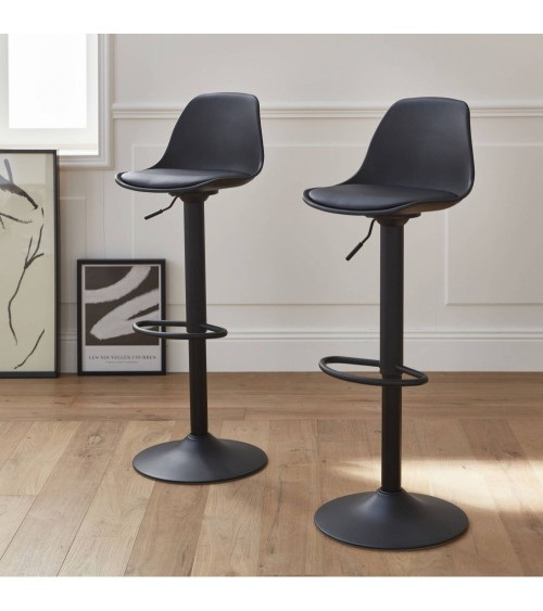 Lot de 2 tabourets de bar réglables, simili cuir noir