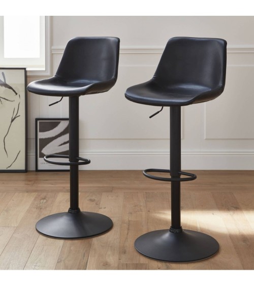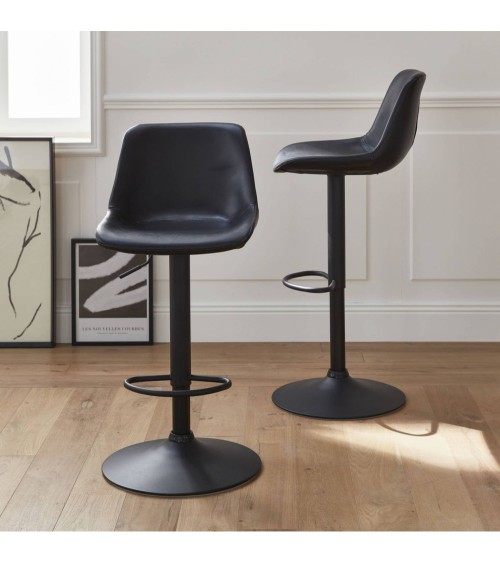Les + produitSimili cuir solidePiètement en métalHauteur réglableRepose-pieds inclus Notre collection Noah a été pensée pour apporter une touche de caractère à votre intérieur. Des tabourets de bar à l'allure vintage qui allient confort et design. Ces produit ont été déclinés dans plusieurs coloris tendances choisis pour parfaire votre intérieur et se fondre dans tous les styles de décoration. Misez sur des pièces de caractères avec nos tabourets de bar Noah qui allient parfaitement confort et design. Le revêtement en simili cuir est résistant et ergonomique. Cette matière élégante réveille votre intérieur et lui apporte une touche vintage. La structure en métal offre stabilité et équilibre. Ces chaises hautes sont dotées d'un repose pieds très pratique pour encore plus de confort et de maintien. Avec leur hauteur réglable, ces tabourets s'adaptent à vos besoins. Leur hauteur passe de 60,5cm à 81,5cm. Ils pourront ainsi être installés autour d'une table haute, d'un bar ou d'un îlot central. Confortablement installés sur ces tabourets de bar, vous allez avoir envie de rester plus longtemps à table pour refaire le monde entre amis.CaractéristiquesRevêtement assise : 100% Simili cuirStructure assise : Bois Pieds : Métal Couleur structure : noire (peinture émaillée)Nombre de pieds : 1Dimensions Dimensions dun tabouret : L 45 x P 53 x H 88 / 109cmHauteur dassise : 60,5 / 81,5cmEpaisseur assise : 3cmDimensions dossier : H 27,5cmHauteur des pieds : 57,5 / 78,5cmDiamètre du pied : 45cmPoids dune chaise : 7,55kg