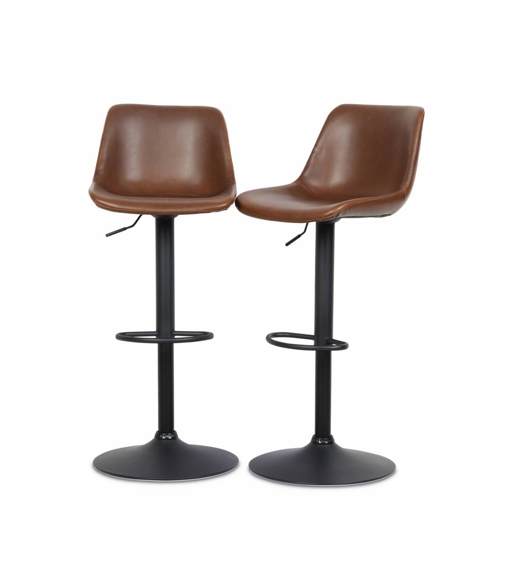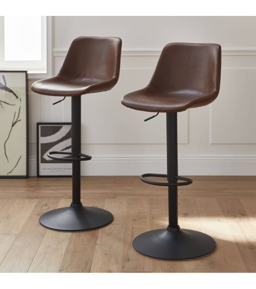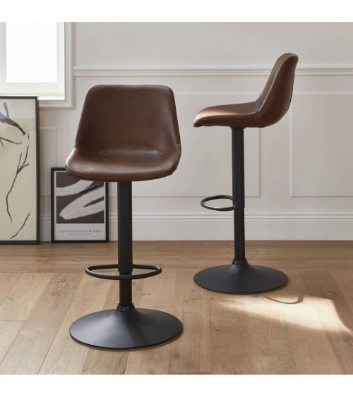 Les + produitSimili cuir solidePiètement en métalHauteur réglableRepose-pieds inclus Notre collection Noah a été pensée pour apporter une touche de caractère à votre intérieur. Des tabourets de bar à l'allure vintage qui allient confort et design. Ces produit ont été déclinés dans plusieurs coloris tendances choisis pour parfaire votre intérieur et se fondre dans tous les styles de décoration. Misez sur des pièces de caractères avec nos tabourets de bar Noah qui allient parfaitement confort et design. Le revêtement en simili cuir est résistant et ergonomique. Cette matière élégante réveille votre intérieur et lui apporte une touche vintage. La structure en métal offre stabilité et équilibre. Ces chaises hautes sont dotées d'un repose pieds très pratique pour encore plus de confort et de maintien. Avec leur hauteur réglable, ces tabourets s'adaptent à vos besoins. Leur hauteur passe de 60,5cm à 81,5cm. Ils pourront ainsi être installés autour d'une table haute, d'un bar ou d'un îlot central. Confortablement installés sur ces tabourets de bar, vous allez avoir envie de rester plus longtemps à table pour refaire le monde entre amis.CaractéristiquesRevêtement assise : 100% Simili cuirStructure assise : Bois Pieds : Métal Couleur structure : noire (peinture émaillée)Nombre de pieds : 1Dimensions Dimensions dun tabouret : L 45 x P 53 x H 88 / 109cmHauteur dassise : 60,5 / 81,5cmEpaisseur assise : 3cmDimensions dossier : H 27,5cmHauteur des pieds : 57,5 / 78,5cmDiamètre du pied : 45cmPoids dune chaise : 7,55kg