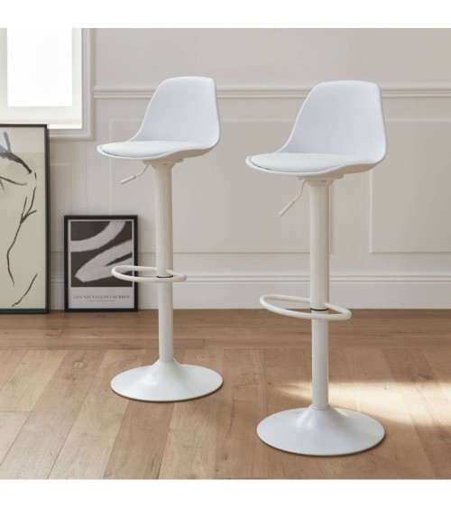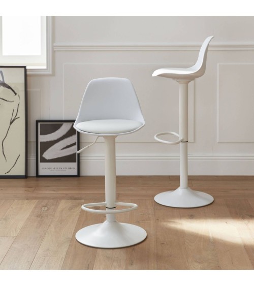 Tabourets de bar réglables, simili cuir blanc