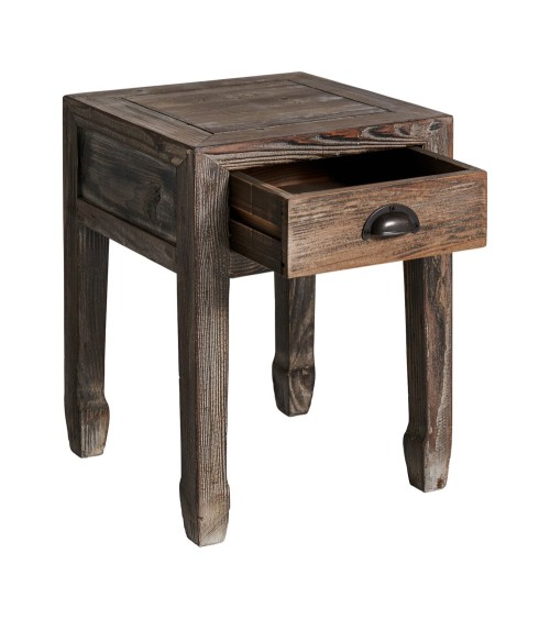 La collection Seyne en bois de pin va venir agrémenter vos pièces les plus accueillantes. La table dappoint Seyne est entièrement fabriquée en bois de pin incolore avec deux pieds droits qui soutiennent un petit tiroir pour y ranger de petits objets. C'est un meuble qui saccordera parfaitement avec dautres meubles de style nordique et colonial dans le salon. Sa taille est de 39x39x51 cm.
