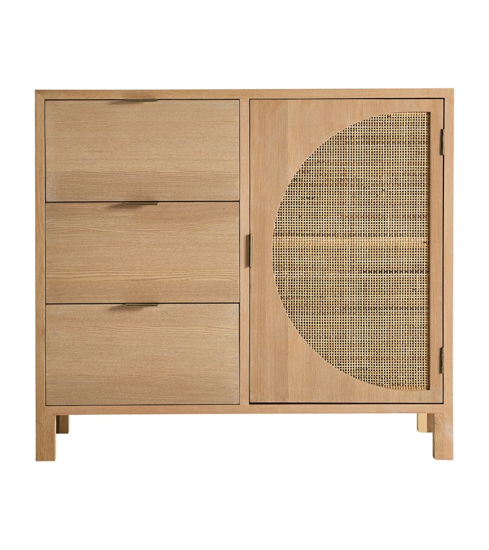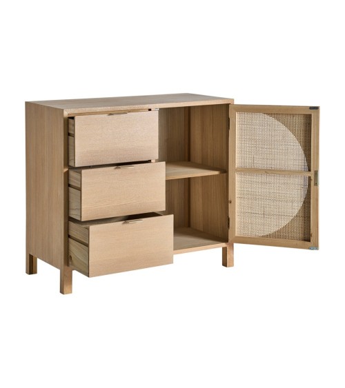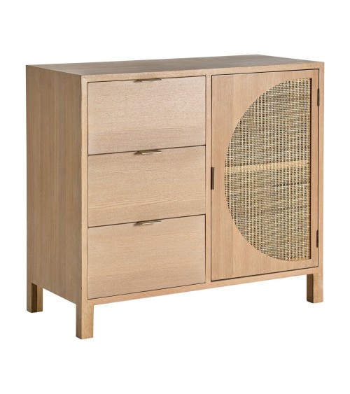 Les matériaux nobles et le bois naturel font leur entrée chez Lastdeco dans une série de meubles qui nous transportent dans un espace plus pur et durable, qui rapproche la nature du foyer. La commode de la collection Bracke transmet cette chaleur grâce à sa structure en pin associée à un cannage en rotin de forme semi-circulaire. De style nordique, c'est un article parfait pour agrémenter votre chambre. Dimensions : 90x40x80 cm.