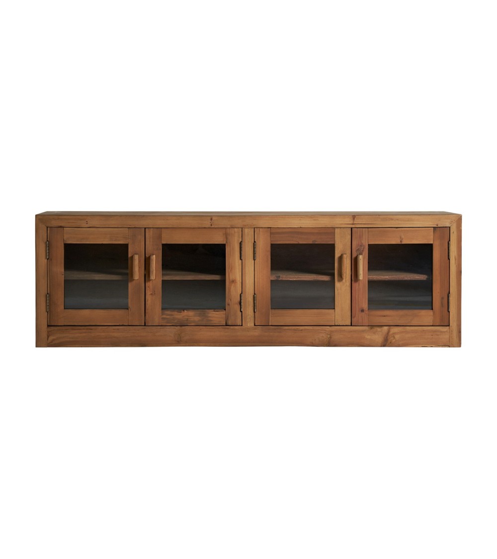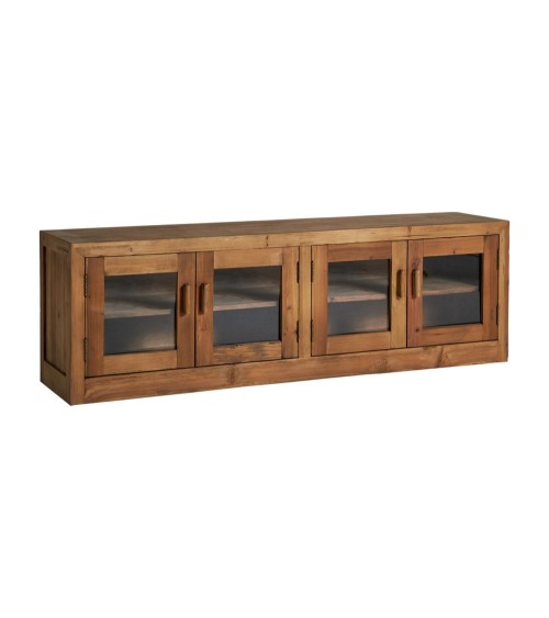 Avec une structure solide et accueillante en bois de pin, le meuble TV Mens va venir agrémenter vos pièces les plus chaleureuses. Il est entièrement fabriqué en bois de pin incolore et il est constitué de quatre portes qui souvrent sur des étagères intérieures en haut. C'est un meuble qui saccordera parfaitement avec dautres meubles de style nordique et colonial dans le salon. Sa taille est de 160x35x55 cm.