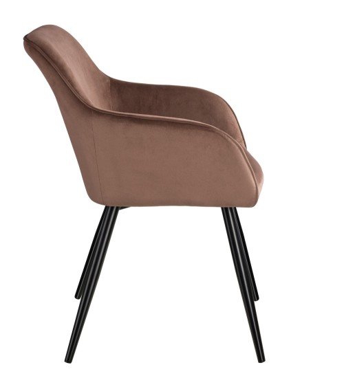 Notre chaise élégante rembourrée tectake effet velours ajutera une touche glamour dans votre maison. Les différents revêtements sont disponibles dans une très large palette de couleurs et vous pouvez même combiner cette chaise avec votre intérieur. Le cadre en acier robuste vous assure une bonne stabilité et une grande résistance. Pour amortir le bruit et pour empêcher les rayures, les pieds élancés de notre chaise de salle à manger sont dotés d´embouts en plastique. Le dossier large et rembourré et les accoudoirs se caractérisent par un confort optimal : beau et pratique à la fois. Dimensions totales (LxlxH) : environ 58 x 62 x 82 cm Surface d'assise (Lxl) : environ 40 x 42 cm Hauteur d'assise : environ 47 cm Hauteur du dossier : environ 40 cm Hauteur des accoudoirs au-dessus du sol : environ 63 - 66 cm Distance intérieure entre les accoudoirs : environ 47 cm Capacité de charge maximale: 120 kg Poids : environ 5,9 kg Matériaux : 100 % Polyester (housse), Polyuréthane (rembourrage), Acier (pieds).
