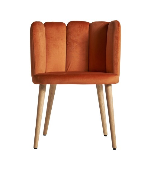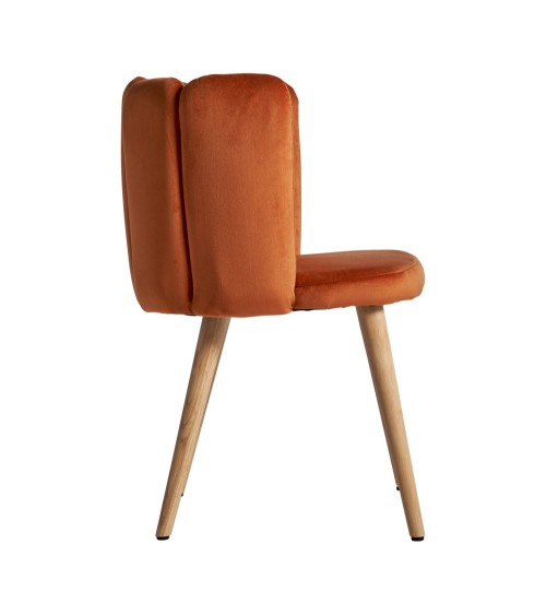 Chaise vergne, couleur orange foncé, style art déco. Fabriqué en velours, combiné avec bois dhévéa et mousse. Produit démontable.