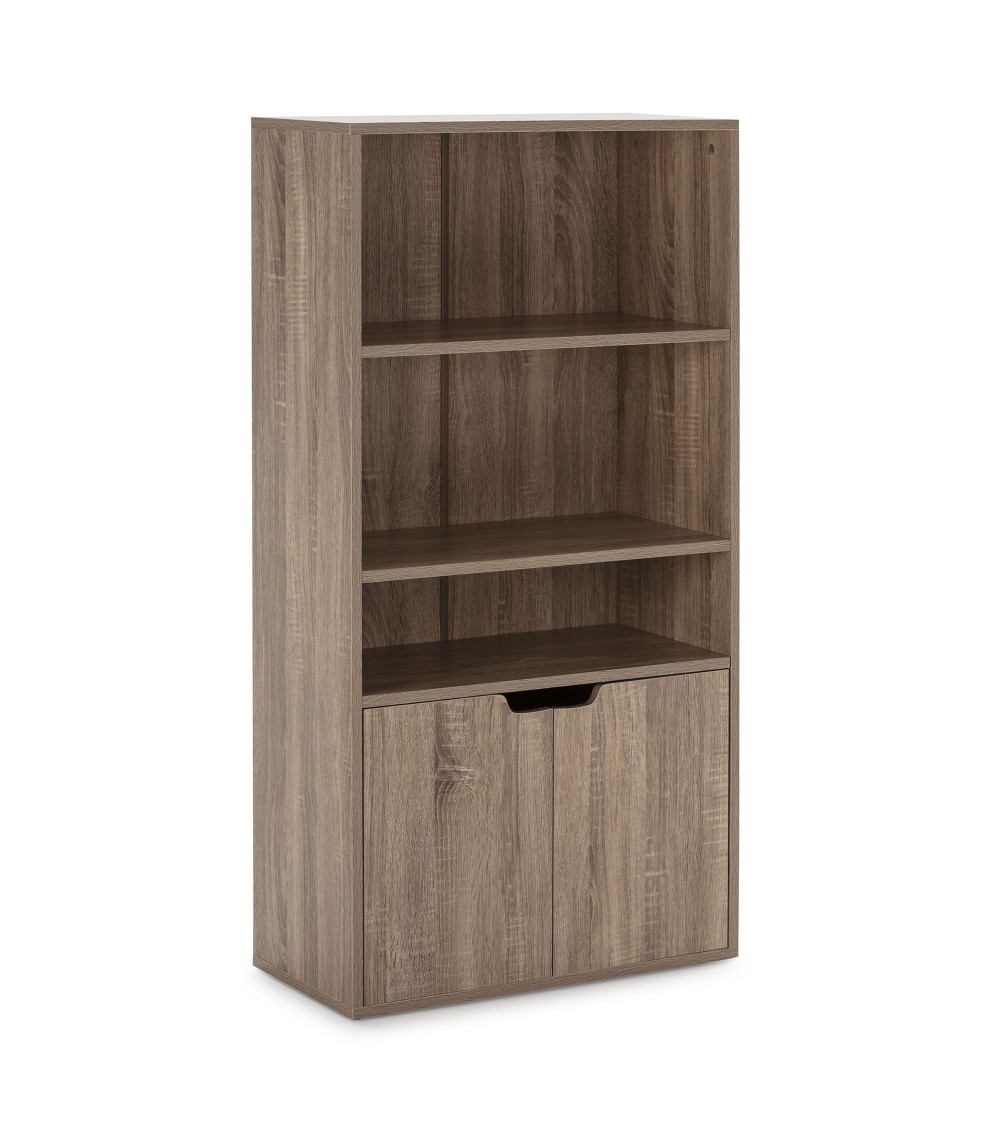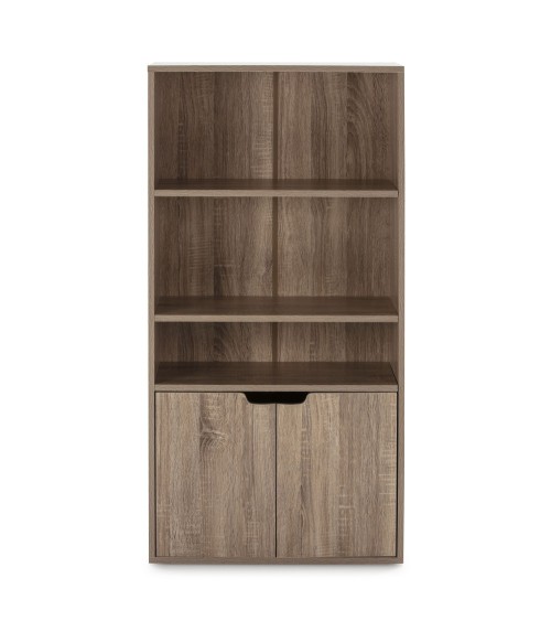 Étagère de rangement de bureau, couleur chêne 3 cases et 2 portes