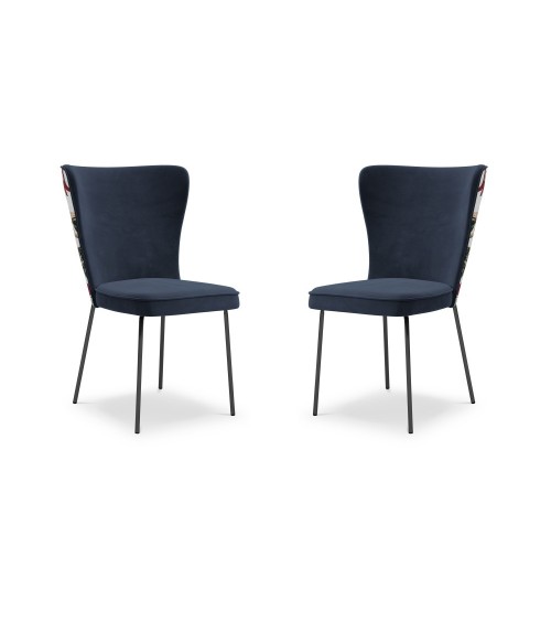 Ensemble de 2 chaises 1 place en velours bleu foncé