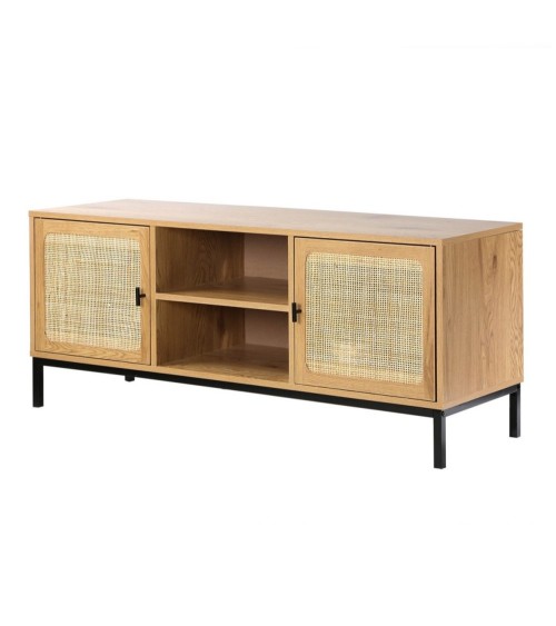 Meuble TV 2 Portes avec Cannage Rotin et 2 Niches - L120cm
