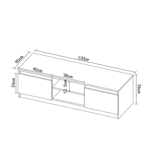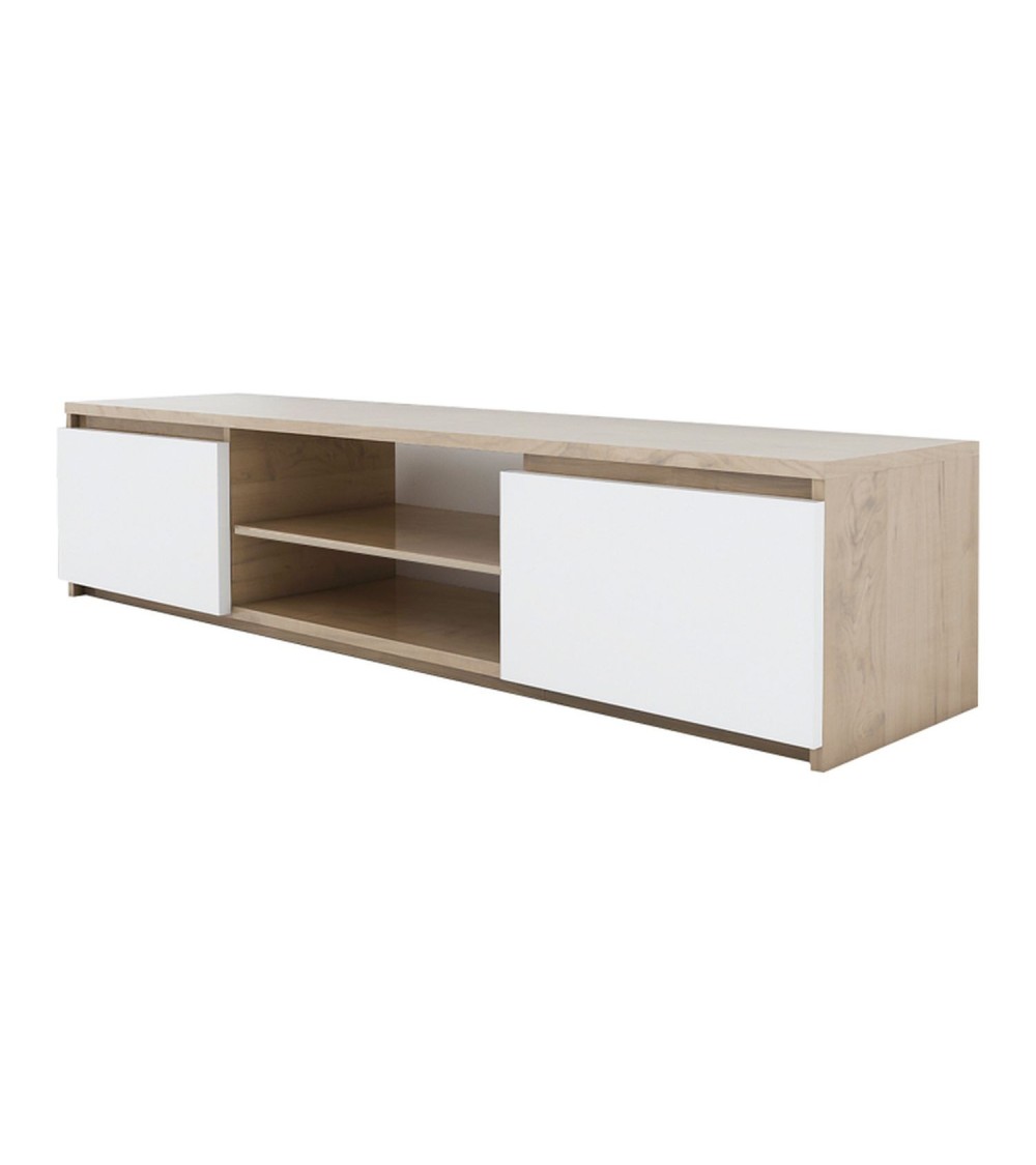 Nous vous proposons notre meuble TV Jack, pour apporter une touche d'élégance à votre salon. Sobre et très pratique, il possède 2 placards de rangement de 24 x 40 cm et 2 niches de 38 x 12,5 cm pour y glisser votre matériel hifi. On aime le contraste entre sa structure couleur chêne et ses portes blanches qui s'adapte à tous les intérieurs. Vous pourrez poser sur la tablette, votre télévision et exposer vos objets déco.Le montage est très simple, son entretien lest tout autant. FICHE TECHNIQUE- 2 portes de placard finition blanc brillant.- 2 niches- Matière : Structure du meuble TV en MDF 15 mm d'épaisseur qualité E1.- Couleur : Chêne et Blanc finition mat.- Equipé de rangements fermés idéaux pour ranger vos objets.- Facile à monterCARACTERISTIQUES TECHNIQUES- Dimensions : Largeur 120 cm x Profondeur 36 cm, Hauteur 40 cm.- Poids : 21 kilogrammes.- Notice de montage inclue