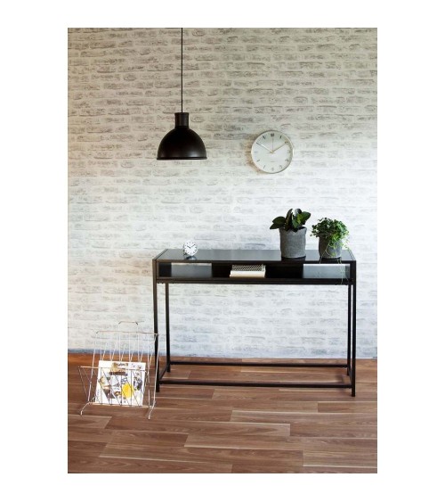 A la fois discrète et indispensable, la console Fushion de Leitmotiv est le meuble d'entrée idéal. Ses 122 cm de longueur permettent d'y poser un vide-poches, mais aussi d'accueillir un bouquet de fleurs, des sculptures  Et même de cacher des menus objets dans sa niche de rangement. La couleur blanche ou noire et la finition laquée sur métal de cette console en font autant un meuble qu'un objet de décoration précieux.Animer une entrée, faciliter le rangement du salon ou pimper un couloir, la console Fushion sait tout faire ! Ses dimensions pratiques y sont pour beaucoup : 122 cm de long, 81 cm de haut et seulement 30 cm de profondeur, ce qui lui permet de se glisser partout. Grâce à cette console, plus besoin de chercher où poser pots de fleurs et autres décorations : elle peut supporter jusqu'à 10 kg. En prime, une niche de rangement dissimule les objets moins esthétiques.Côté esthétique, le parti pris de la console Fushion est épuré, voire industriel. Un piètement en métal d'une rigoureuse simplicité, un plateau en MDF doté d'un grand rangement ouvert, et surtout une finition laquée très mode. La console Fushion est proposée dans deux coloris, le blanc pur et le noir profond, afin de se fondre avec tous les styles de mobilier.