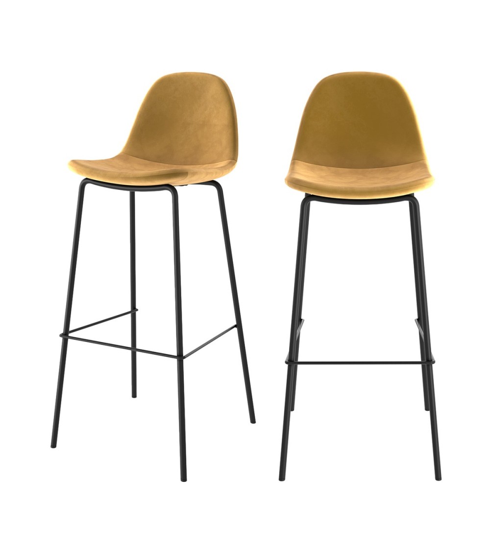 Chaise de bar en velours jaune 75 cm (lot de 2)