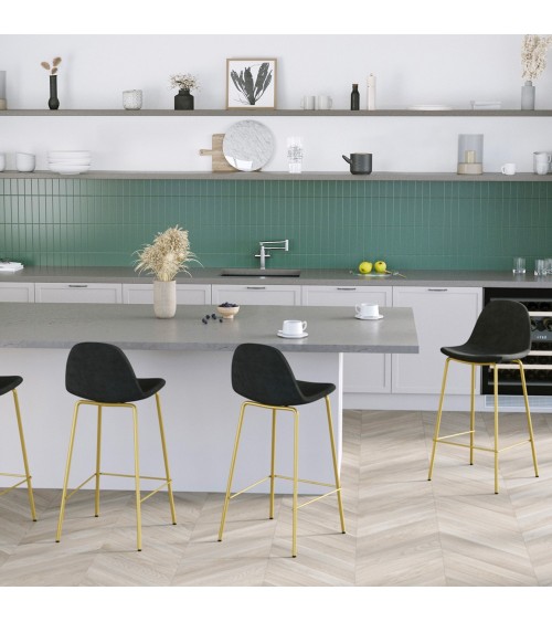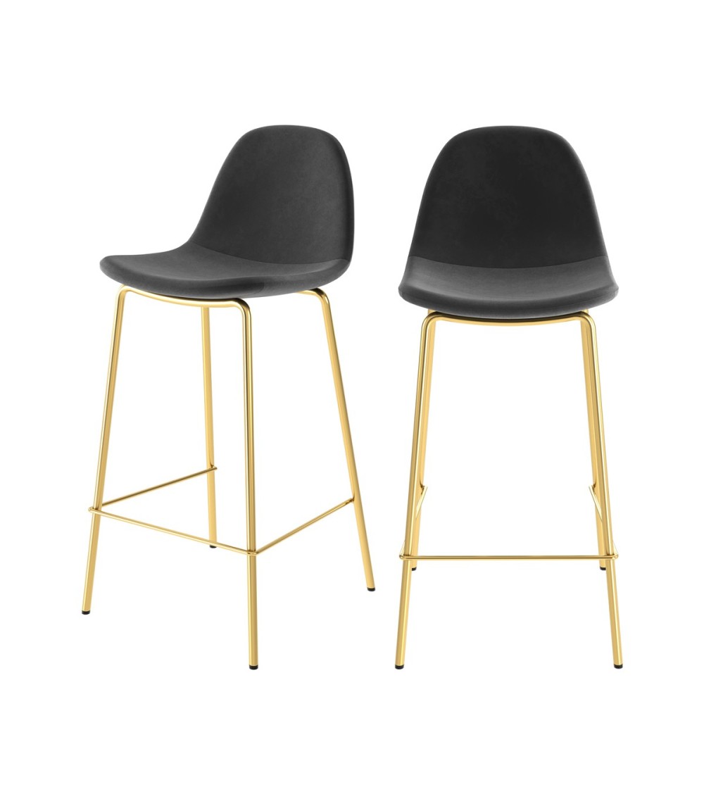 Chaise de bar mi-hauteur 65 cm en velours noir (lot de 2)