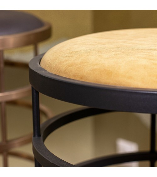 Ce tabouret de bar avec son assise en simili cuir Camel au style très épuré et branché, est fait pour votre intérieur si vous souhaitez y apporter de la modernité. Sa structure en forme de cercle en métal noir lui donne tout son raffinement. Description : Tabouret de bar en Simili cuir Camel avec pieds en forme de cercles en métal noir mat. Livré monté. Confort : Garnissage assise : mousse 100% polyuréthane Revètement : 50% PVC et 50% polyuréthane Structure : Assise : en métal noir mat Pieds : en métal noir mat Dimensions : Totales : L40xH71xP40 cm Assise : Diamètre 40cm Hauteur de l'assise : 71cm Autres détails : Poids net unitaire : 6.600kg Poids maximum supporté : 250 Kgs Non déhoussable Dimensions et poids du colis : L74.5xH42xP43cm Poids du colis : 8.465 kg Nettoyer à l'aide d'un chiffon sec