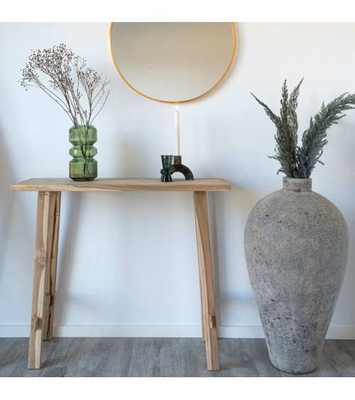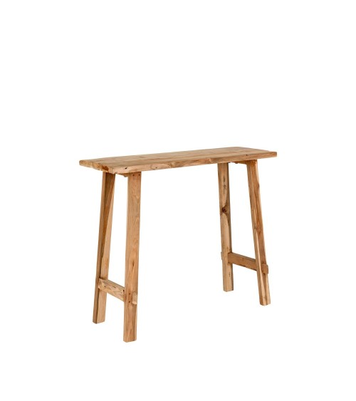 Vous ne le savez peut-être pas encore, mais Girona va devenir votre meilleur alliée au quotidien ! Cette console en teck proposée par House Nordic pourra se faire une place dans de nombreux spots de la maison. Elle affiche en effet un plateau rectangulaire au bois tout en nuances de 90 x 30 cm et mesure 80 cm de haut. Elle est dotée de 4 pieds, reliés deux par deux façon chevalet d'artiste. Voilà pour les caractéristiques techniques !Cette console nous charme par son look rustique aussi simple qu'efficace. Pour compenser le côté brut du meuble, mariez-le à des vases colorés et des objets de déco originaux.La console Girona pourra être positionnée dans l'entrée, mais également dans un couloir, pour occuper l'espace de façon astucieuse. Dans une chambre, elle pourra accueillir votre nécessaire de beauté. Dans un bureau, elle sera utile pour déposer des livres et documents, et vous pouvez aussi l'installer dans votre salon, en guise de meuble d'appoint. Si votre table basse et votre table à manger sont en bois, vous pourrez créer une jolie harmonie dans la pièce. N'hésitez pas alors à mixer le mobilier en bois brut avec des assises colorées et des tableaux modernes aux murs.
