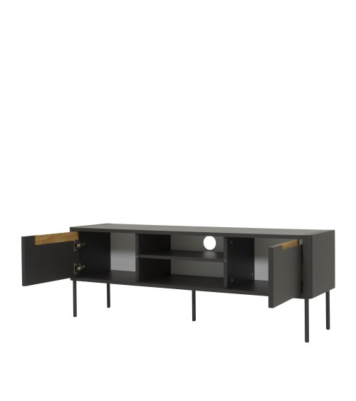 Chez Switch, tout est question d'élégance. Ce meuble TV Tenzo se pare d'une allure sobre et rectiligne avec des bords à angles droits pour s'intégrer à la perfection aux intérieurs modernes. Il suffit d'un coup d'il pour remarquer ses finitions soignées.Simple et raffiné, le meuble TV en bois 2 portes L141,5 cm Switch permet de créer une décoration épurée. Avec ses poignées en bois de chêne massif et ses pieds droits en métal, le meuble TV Switch fait la part belle à l'esprit nordique.Ce meuble comporte 2 niches et 2 compartiments de rangement avec portes, ce qui le rend ultra fonctionnel pour organiser ses effets personnels : DVD, CD, magazines, consoles de jeux, télécommandes ou autres équipements high-tech. Pratique, ce meuble comporte un passe-câbles qui permet d'installer les appareils multimédia en toute discrétion. Il est doté de la fonction « soft close » pour faciliter l'ouverture et la fermeture des portes.Pile poil dans la tendance sans en faire trop, ce meuble permet de sublimer la déco du salon ou de la chambre sans surcharger l'atmosphère. Envie d'un rendu plus personnalisé ? On choisit tout simplement parmi les belles déclinaisons de couleurs : blanc, gris anthracite ou vert forêt.