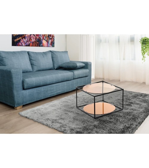 Cube avec deux étagères rondes, différentes combinaisons de couleurs, design moderneTable d'appoint en forme de cube avec cette table d'appoint, le cadre et les plateaux de table sont en parfaite harmonie les uns avec les autres. Le cadre métallique ouvert en forme de cube est non seulement équipé d'un plateau de table, mais également d'une plaque de base supplémentaire, de sorte que la table d'appoint peut être utilisée à la fois comme surface décorative et espace de stockage. La forme ronde des panneaux encastrés maintient le concept de formes géométriques et crée en même temps un contraste avec le cadre angulaire. La table minimaliste est particulièrement efficace dans les intérieurs modernes et élégants, mais même les intérieurs classiques peuvent être améliorés avec ce modèle. Grâce au design décoratif, la table d'appoint devient rapidement un accroche-regard dans la pièce. La couleur réelle du tableau peut différer des images. Cube avec deux étagères rondes, différentes combinaisons de couleurs, design moderne Design ouvert et moderne Table d'appoint en forme de cube Table ronde et plaque de base Utilisable comme rangement et pour décoration en parallèle Idéal pour les installations modernes Cadre métallique stable Conception harmonieuse du cadre et des plateaux de table Adapté à différents espaces de vie Plus en détails : Fabrication : Fait à la mainCouleurs commerciales : Terra, noirCouleur principale : MarronCouleur secondaire : NoirMotif : UniType de table : Table basseFormat : CarréNombre de places : 2Hauteur (cm) : 36Longueur (cm) : 50Largeur (cm) : 50Dimension article : 50 x 50 x 54 cmCharge maximum autorisée (kg) : 15Poids du produit (kg) : 9Matière principale : MétalMatière : Métal, verreStyle : ContemporainThemes : PopCollection : Cody blackGarantie : 2