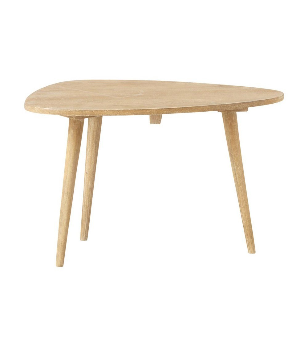 Ludique avec sa forme de ''galet'', la table basse vintage petit modèle TROCADERO est une petite table basse en bois de manguier massif. Montée sur 3 pieds, cette table basse vintage s'inspire du design des années 50. Sobre et fonctionnelle, elle créera une ambiance chaleureuse et épurée dans votre salon. Associez-la à la table basse vintage grand modèle de la même gamme pour un duo très tendance.