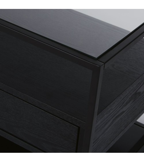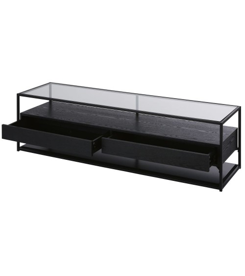 Craquez pour le style minimaliste du meuble TV 2 tiroirs en verre et métal noir RAVEN ! Misant sur un design délicat et des lignes graphiques, ce meuble TV complètera parfaitement un intérieur au style contemporain. Ses 2 tiroirs seront parfaits pour accueillir toutes les affaires qui ont tendance à trainer dans votre salon. Avec lui, les soirées télé et séries auront du style !