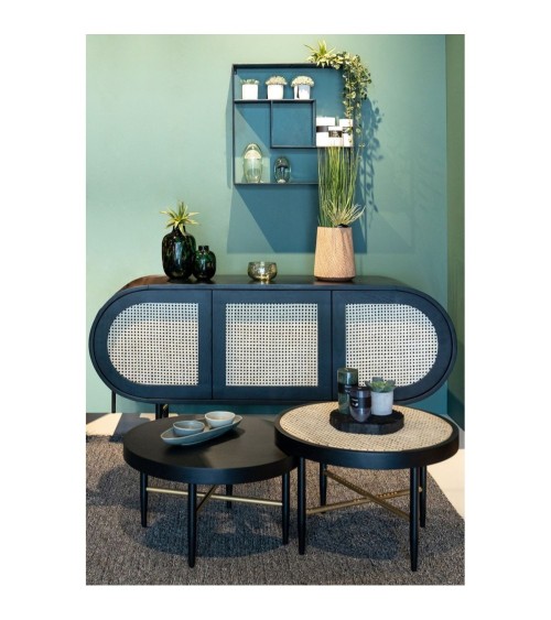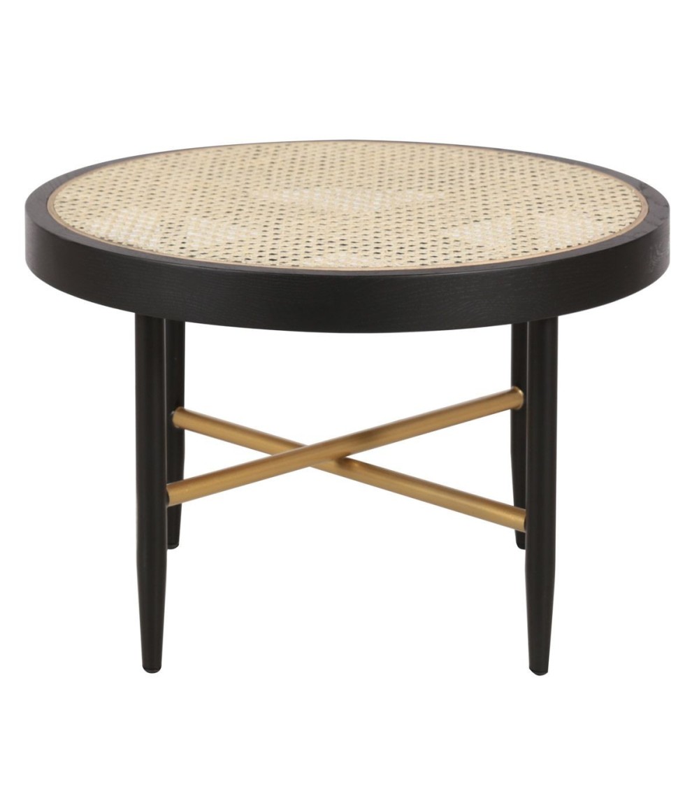Table basse en cannage naturel et chêne noir ronde D 60 cm