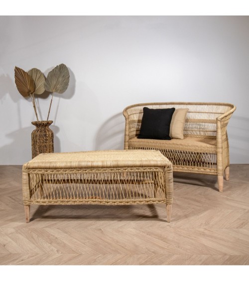 Epatez vos invités grâce à ce banc en rotin naturel traditionnel du Malawi. Alliez authenticité et modernité pour une décoration naturelle et contemporaine ! Agencez votre joli espace détente en apportant cette note d'exotisme tant relaxante que nous convoitons tous ! Banc en rotin naturel du Malawi Structure en bois d'eucalyptus et rotin tissé à la main Dimensions : 100 x 40 x 40 cm Poids : 6.350 kgs Nettoyer à l'aide d'un chiffon sec
