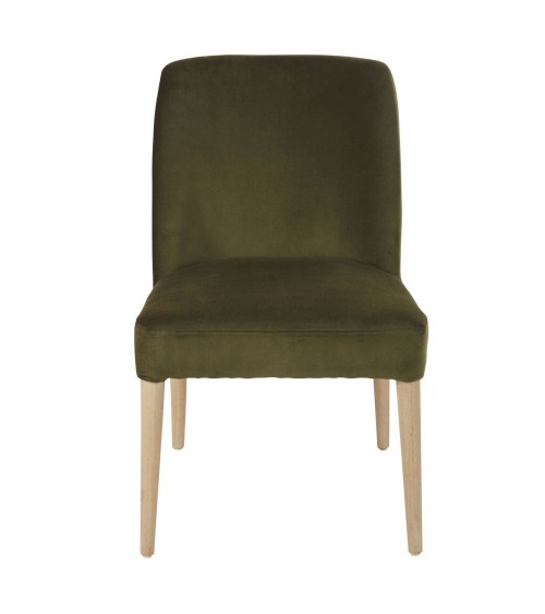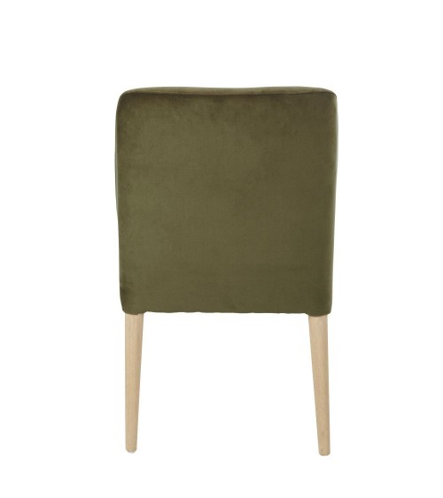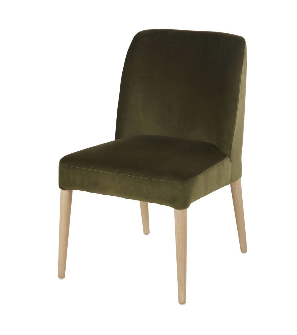 Faites une place au confort et au style autour de votre table avec la chaise en velours vert MELVIL !Son revêtement en velours doux et brillant a une profonde couleur verte, très actuelle.Sa structure en bois clair certifié FSC est épurée, et donne à ce siège un esprit authentique qui saura vous charmer.Son assise et son dossier sont bien rembourrés pour vous assurer un grand confort, même quand le repas tire en longueur.Cest également le dossier enveloppant de cette chaise qui vous permettra dêtre toujours bien installé.Parfaite autour de la table, elle pourra tout aussi bien trouver sa place dans la chambre devant une jolie coiffeuse !