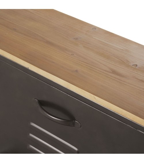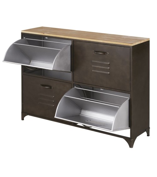 Misez sur la tendance de la déco industrielle avec le meuble à chaussures 4 portes en métal gris WAYNE Son plateau en bois de sapin massif, apportera du caractère à votre meuble à chaussures 4 portes Avec ses 4 espaces de rangement, vous disposerez de toute la place nécessaire pour ranger vos souliers ! On aime également sa structure en métal gris pour apporter un côté industriel à votre séjour Associé à des couleurs chaudes, par exemple, ce meuble à chaussures sera parfaitement dans le thème !