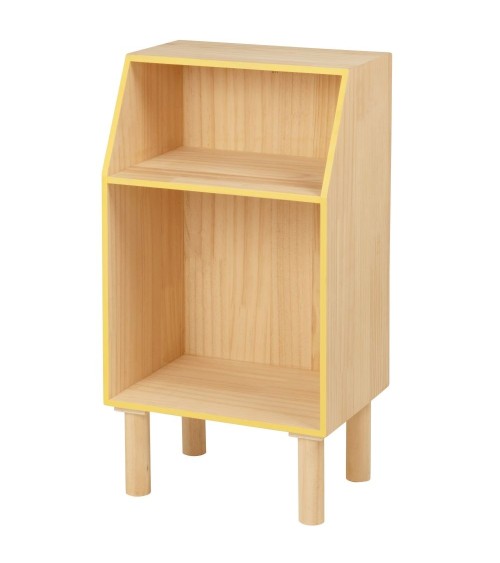 Petit meuble de rangement asymétrique en bois de pin jaune