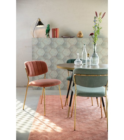 Chaise de repas Bellagio avec une assise confortable en tissu rose et des pieds de couleur or. Revêtement mixte (95% polyester, 5% nylon)Assise et dossier en contreplaqué avec mousseDensité de mousse 25Cadre en acier couleur orCharge maximale: 150 kgDimensions: 49x56,5x79 cm (LxPxH)Hauteur d'assise: 48 cmProfondeur d'assise: 46,5 cmDécouvrez la table Circle, disponible sur notre site et offrez vous la combinaison gagnante !Egalement disponibles: les tabourets Bellagio.