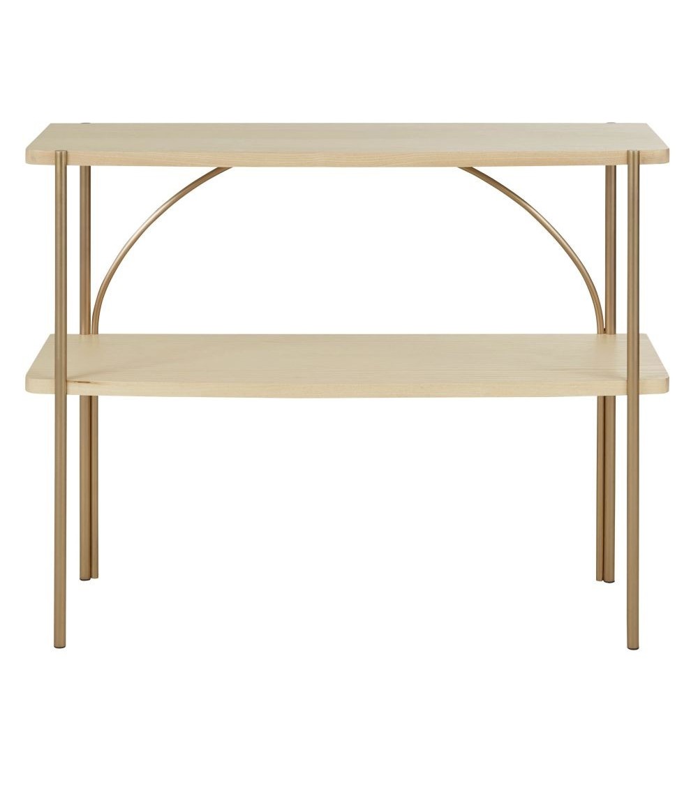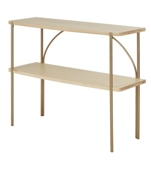 On vous propose élégance et simplicité avec la console en métal coloris laiton ORMOND Bougies, plantes, livres, apposez l'élément de déco qu'il vous chante sur ses 2 étagères !Cette console pourra se marier aux meubles de toutes vos piècesPour casser la simplicité, on adore sa structure en métal coloris laiton pour plus de caractèreEn plus, ce meuble est désigné 100% Maisons du Monde !